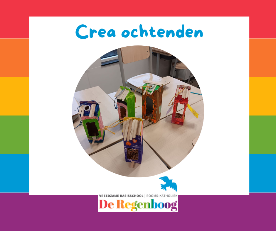 De afgelopen 3 weken zijn we druk bezig geweest met de crea ochtenden. Zo zijn er bijvoorbeeld in de middenbouwgroepen vogelhuisjes gemaakt. Erg leuk! De kinderen hebben weer genoten. Hulpouders … Lees Meer