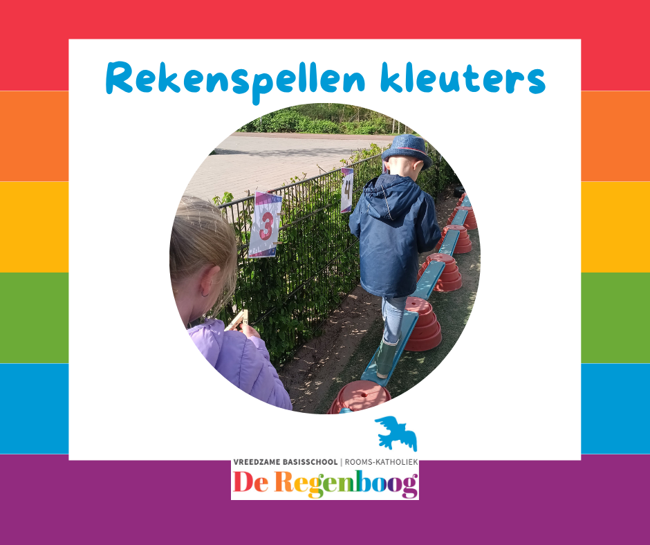 Rekenspellen kleuters Met dit mooie weer nemen de kleuters de rekenspellen ook mee naar buiten. We hangen de knijpers met stippen aan de juiste cijferkaart, terwijl we over een parcours lopen.